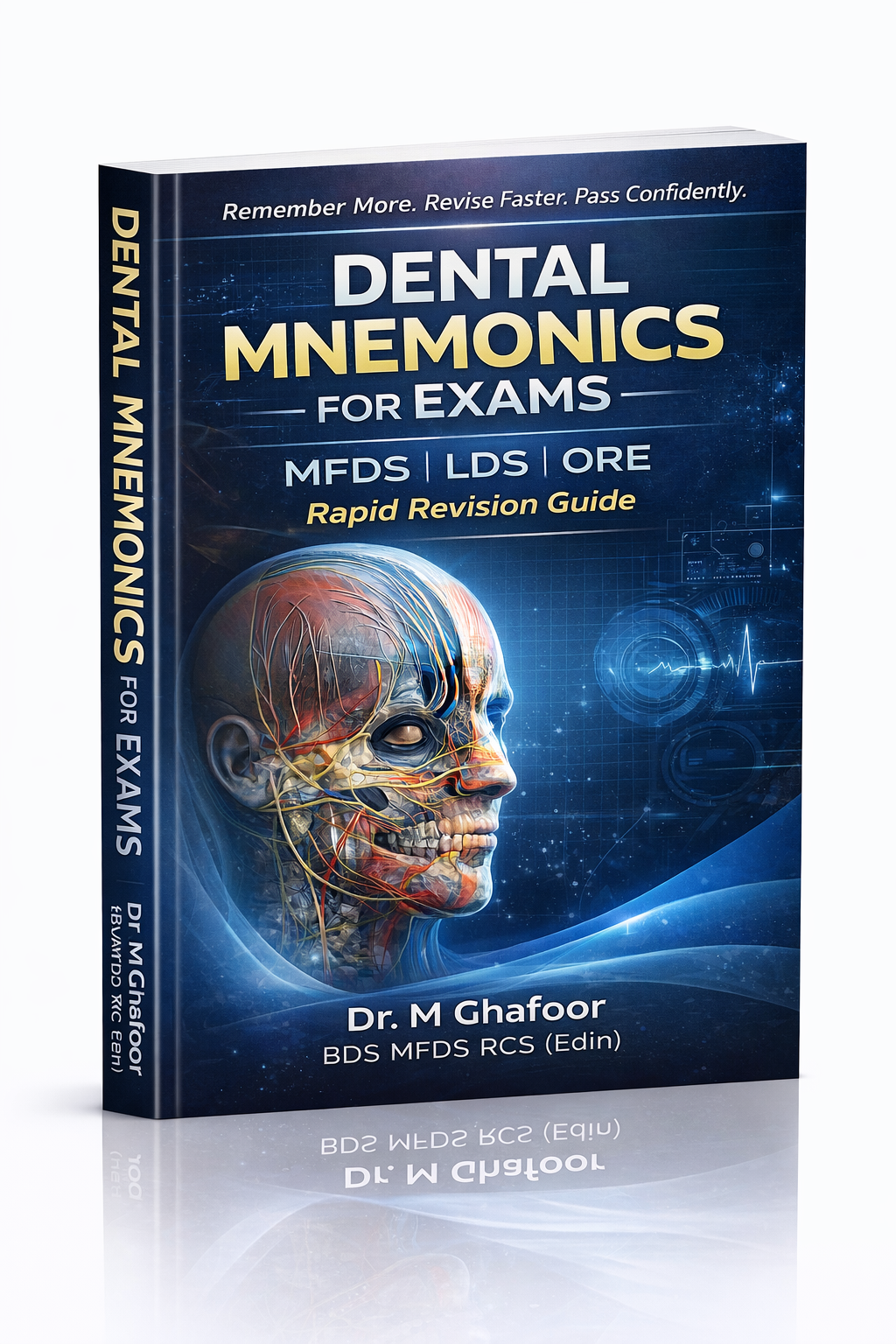 Designed specifically for students and overseas dentists preparing for MFDS, LDS, and ORE exams, this guide transforms complex dental concepts into clear, memorable mnemonics you can recall instantly in the exam.